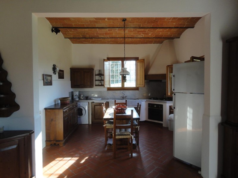 COLONICA CON PARCO E PISCINA - Sulle dolci colline della Valdera, nei pressi del Comune di Peccioli, è situata questa tipica casa colonica di ampia metratura. Il corpo principale del fabbricato è disposto su due livelli, al piano terra troviamo l'ingresso con affaccio sull'ampio soggiorno con camino, la cucina in muratura abitabile, il bagno finestrato con doccia, il ripostiglio con predisposizione per caldaia a GPL e una scala di collegamento interna. Al piano primo troviamo la sala da conversazione caratterizzata dall'originario pavimento, quattro ampie camere di cui una soppalcata, due bagni oltre a lavanderia; il primo piano è accessibile anche tramite scala esterna. Accessorio al corpo principale si trova il forno in muratura con i relativi spazi conviviali. La piscina, ed il parco da 3 ettari rendono unico l'immobile nel suo genere che gode di una vista su tutta la campagna toscana circostante.