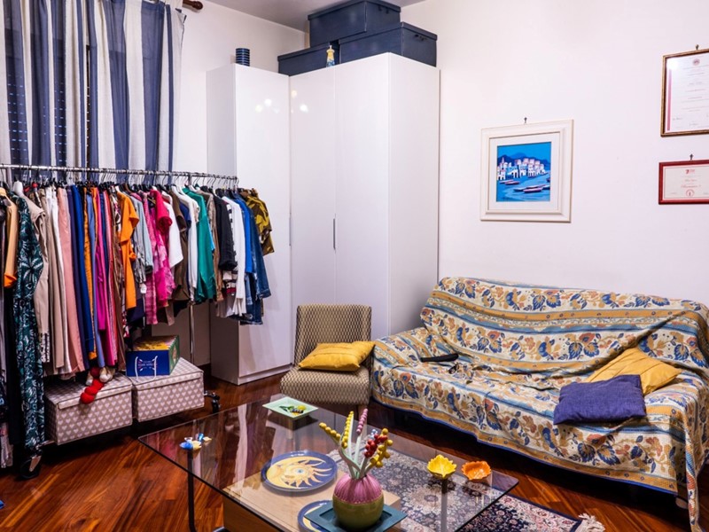 salone doppio con doppia esposizione e pratico armadio a muro