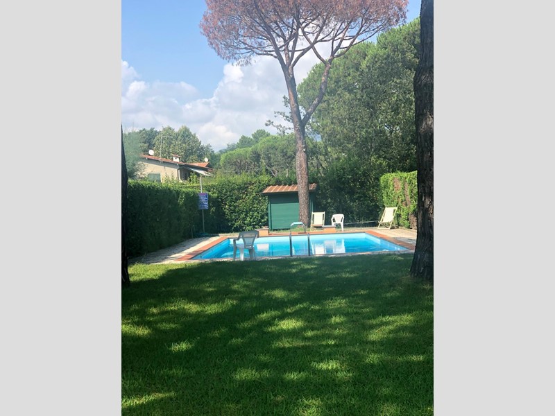 Alle porte del Forte pochi passi dal mare. ! Zona Poveromo a pochi minuti da Forte dei Marmi. ! Elegantissima Villa bifamiliare. a soli 300 metri dalle spiagge della Versilia. ! Immersa nel curatissimo e piantumato giardino di proprietà, con piscina interrata... ! La villa è disposta su 3 livelli e così composta: ingresso, cucina abitabile, soggiorno, disimpegno notte, tre spaziose camere matrimoniali e tre bagni. giardino di circa 500 metri ed a completare 3 posti auto