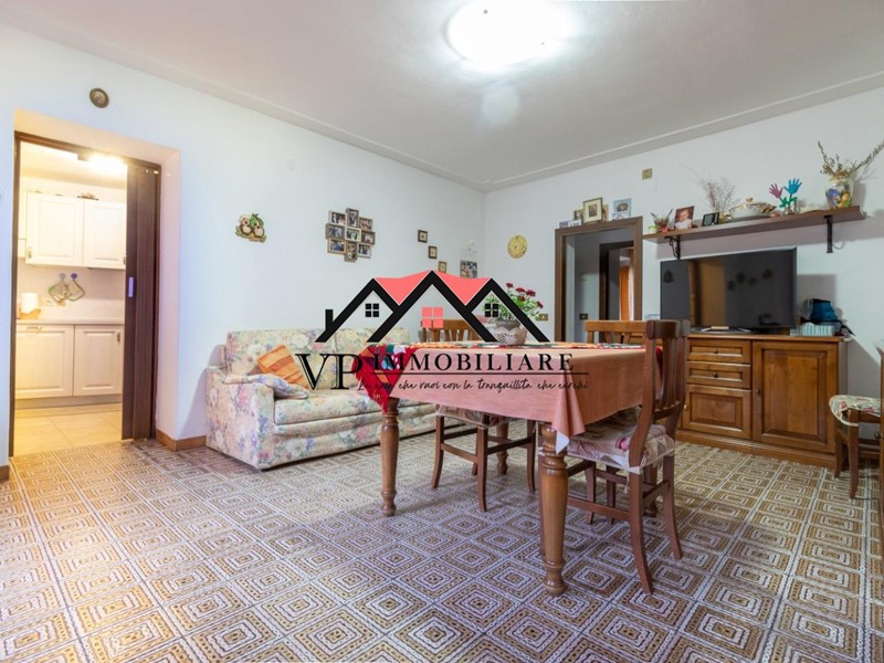 La porzione oggetto di vendita è disposta su due piani per un totale di circa 74 mq ed è così composta: al piano terra troviamo l’appartamento di circa 60 mq avente accesso indipendente da resede esclusivo, formato da una cucina, soggiorno, un bagno, n.2 camere e ripostiglio. Al piano seminterrato troviamo una cantina composta da due vani comunicanti di circa 14 mq caratterizzata da un soffitto alto 3,50 mt. Nella cantina è possibile creare un collegamento interno con l'appartamento in quanto ubicato al piano sovrastante.