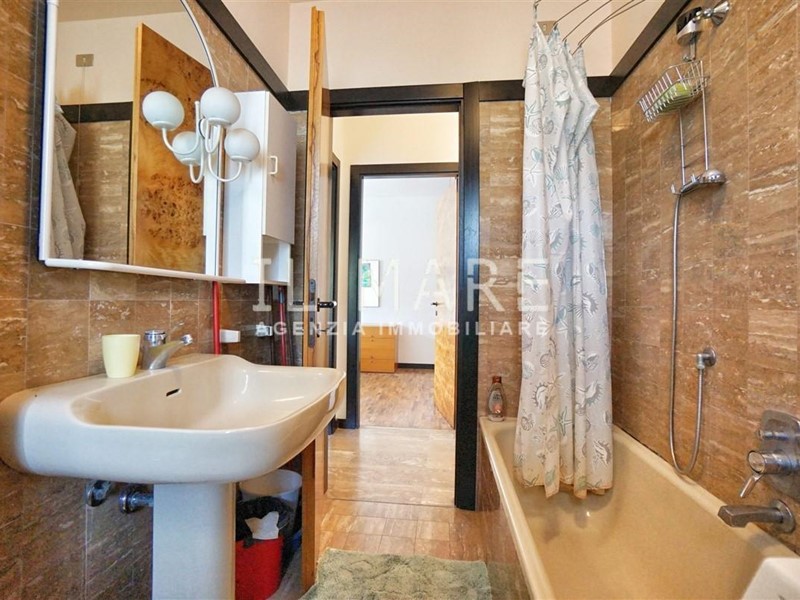 Posto al piano primo (e ultimo, senza nessuno sopra) di signorile fabbricato dei primi anni 80, è composto da spazioso ingresso con armadio guardaroba, ampio soggiorno con cucina a vista, balcone con piacevole scorcio vista mare, disimpegno notte, due camere spaziose (una con balcone) e bagno con vasca e finestra.