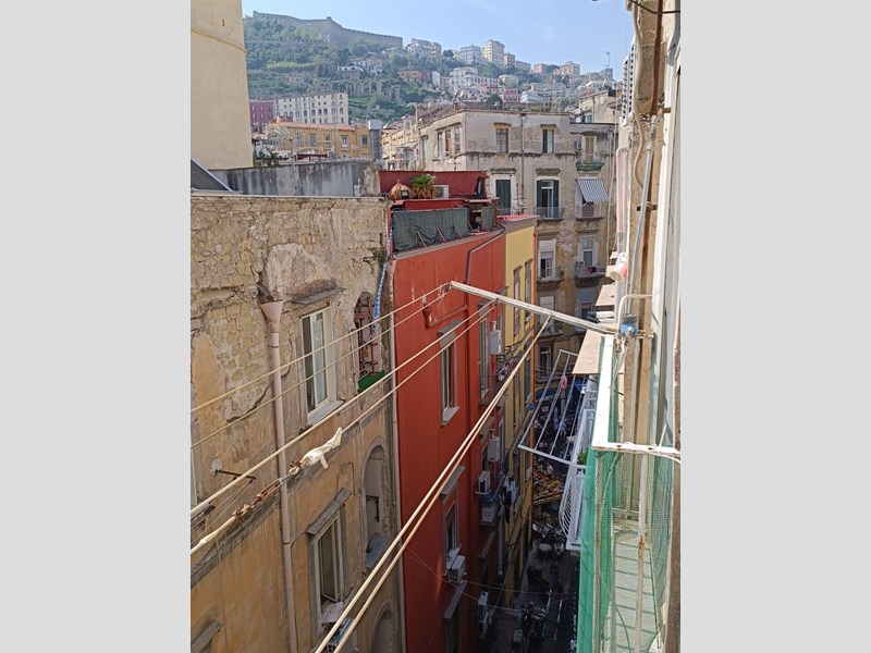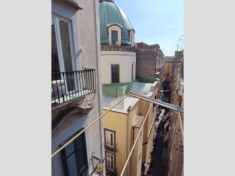 Napoli Centro Vico San Nicola alla Carità. A pochi passi da Via Toledo – altezza Piazza Carità proponiamo in locazione ad uso transitorio per lavoratori non residenti o studenti universitari fuori sede, appartamento ristrutturato, finemente arredato, posto al quinto piano in palazzo sprovvisto di ascensore, molto luminoso con doppia esposizione, munito di aria condizionata (caldo freddo), addolcitore (acqua bevibile), TV, WI FI  Lavatrice, cucina con forno completa di stoviglia, armadi e scarpiera.