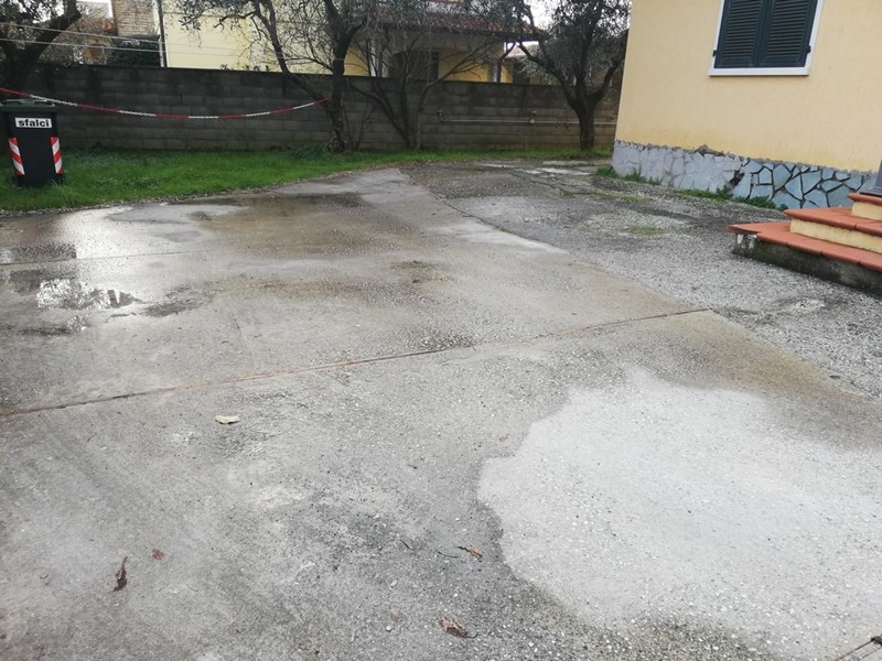 Giardino in parte pavimentato a girare sui quattro lati. Posti auto interni. Soleggiatissima. A 5 minuti da Marina di Carrara.