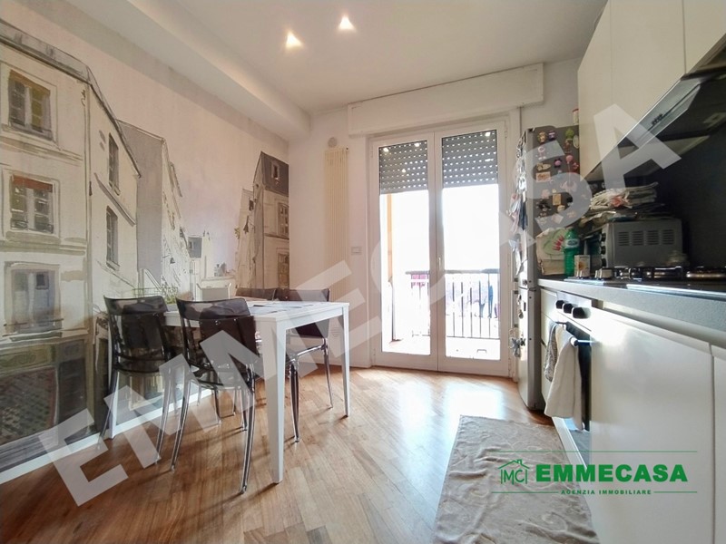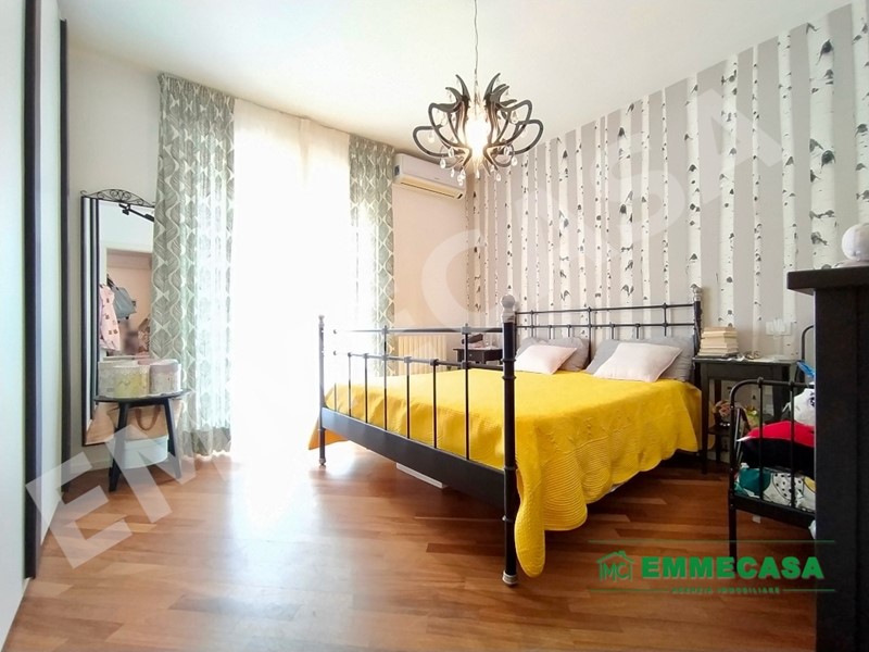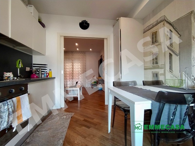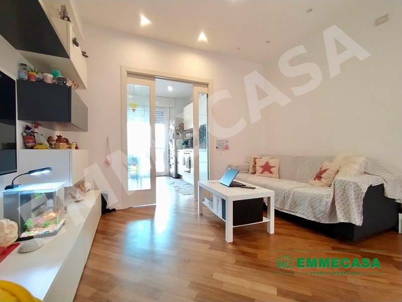 In zona centralissima proponiamo bellissimo appartamento di due vani.\nL'immobile, ubicato al primo piano in piccola palazzina, si compone di ingresso su soggiorno a vista separato dalla cucina abitabile da una doppia porta a scrigno con inserti in vetro decorato, dimpegno che conduce all'ampia camera matrimoniale e bagno.\nQuesta soluzione si presenta in ottimo stato, è termoautonoma e climatizzata, le porte sono a scrigno laccato bianco, il pavimento è in parquet IROKO mentre nel bagno è in resina, gli infissi sono in doppio vetro completi di tenda da sole, la porta d'ingresso è blindata e le pareti della cucina e della camera da letto sono graziosamente decorate con carta da parati.\nL'appartamento dispone di doppia esposizione su due balconi ed è completo di posto auto coperto ed assegnato e cantinola. and euro; 129.000 - Maggiori Dettagli: Porta blindata, Cancello elettrico, Zanzariere, Infissi in vetrocamera, Pavimento in parquet, Tende da sole, Climatizzatore