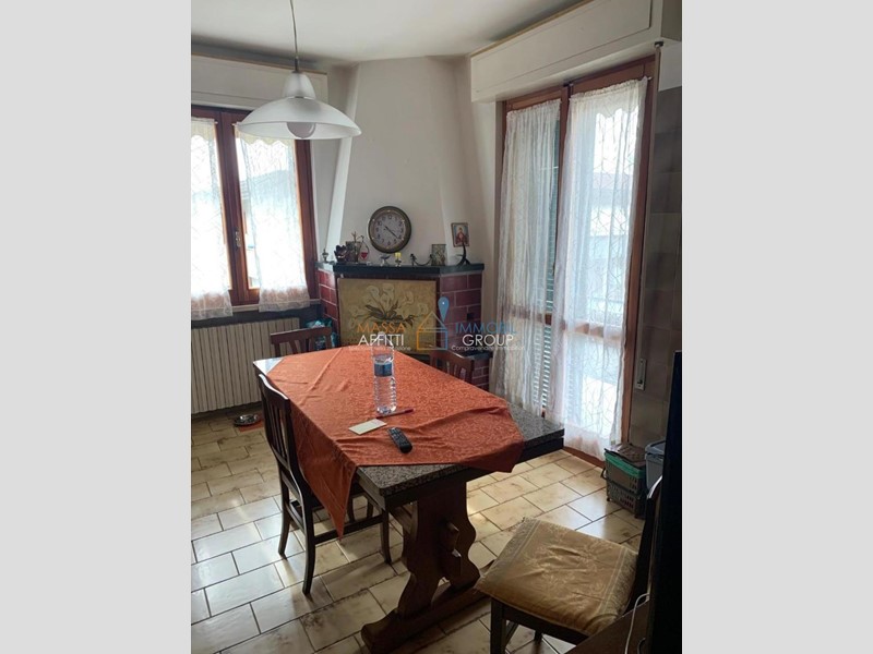Massa, a pochi passi dal Centro, Appartamento in Bifamiliare posto al Primo Piano e disposto su Due Livelli. A Piano Primo: Ingresso su disimpegno, Cucina Abitabile con dispensa, Sala, due Camere Matrimoniali, Studio, Ripostiglio e due Bagni Finestrati con Doccia. Soffitta Praticabile.
