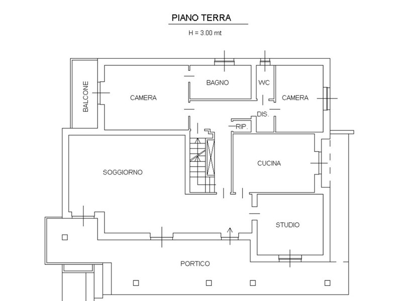 L'unità abitativa presenta: al piano terra ampio ingresso con porticato, salone, sala da pranzo, cucina abitabile, studio finestrato, ripostiglio, 2 camere da letto e 2 bagni di cui uno privato nella camera da letto; al primo piano spazio in abbondanza per tre grandi camere matrimoniali nel sottotetto abitabile, un bagno e un terrazzo.