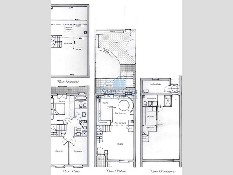 Luni in zona servita a pochi chilometri dal mare villetta a schiera su quattro livelli collegati internamente da comoda scala. La villetta e' cosi' composta: Ingresso da piano terra in soggiorno con camino e cucina a vista con zona pranzo e uscita su terrazzo e piccolo giardino. Al piano superiore tre camere da letto di cui una matrimoniale e due camerette,due bagni di cui uno con vasca e finestra e l'altro con doccia,balcone.Ampia mansarda finestrata open space piastrellata. Al piano semi interrato collegato sia internamente che esternamente ampia taverna con dispensa e zona lavanderia. Riscaldamento autonomo.