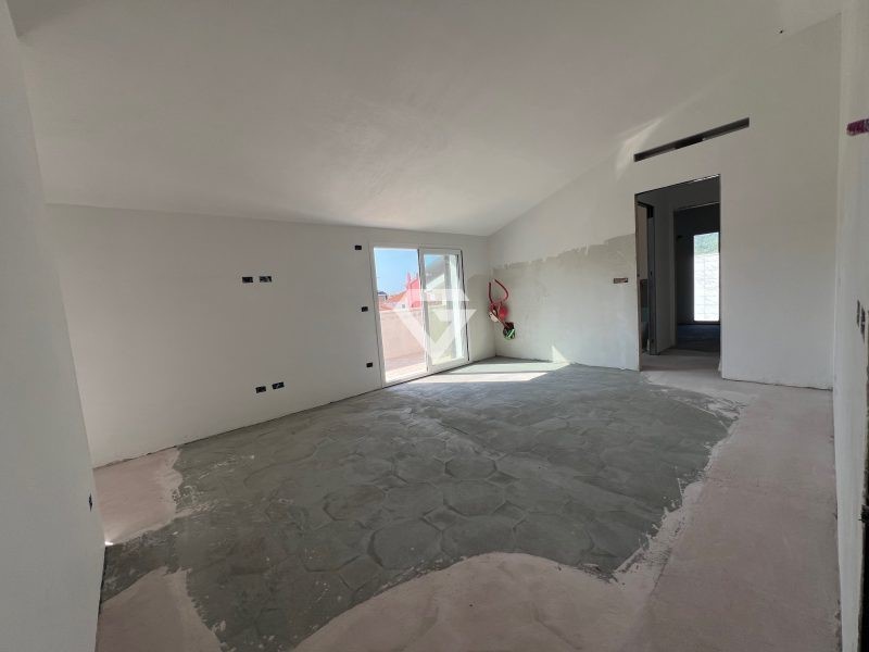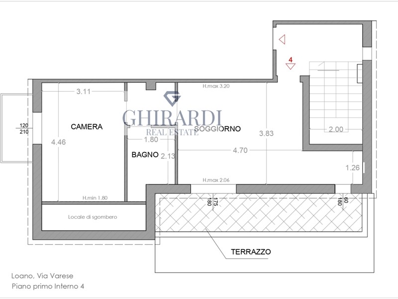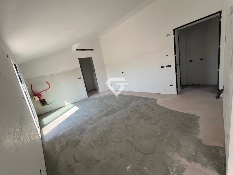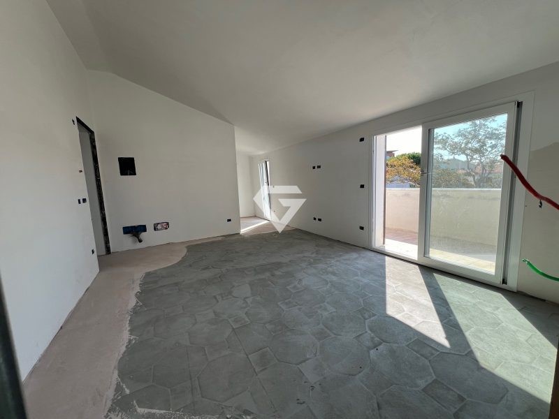 L' alloggio è così disposto: ingresso su zona living con vetrate scorrevoli che accedono all' ampio terrazzo vivibile, disimpegno, bagno finestrato e camera matrimoniale.