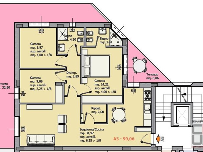 CAPOLUOGO - Empoli - Rif. F/0548 - BARICENTRICO FRA STAZIONE FERROVIARIA E PIAZZA DELLA VITTORIA, ELEGANTE PALAZZO NUOVO PROGETTATO ARCHITETTONICAMENTE E TECNOLOGICAMENTE NEI MINIMI DETTAGLI AL FINE DI OFFRIRE ALL’UTENZA FINALE UN PRODOTTO DI ASSOLUTA QUALITA’ IN CUI RISPARMIO ENERGETICO, FUNZIONALITA’, COMFORT, PRIVACY, RISULTANO ESSERE I PRINCIPALI OBIETTIVI. I MATERIALI PER LA REALIZZAZIONE DELL’INVOLUCRO EDILIZIO IN COMBINAZIONE CON LE SOLUZIONI IMPIANTISTICHE ADOTTATE PERMETTONO DI GARANTIRE ALLE UNITA’ IMMOBILIARI UNA CERTIFICAZIONE ENERGETICA VIRTUOSA E SUPERIORE A QUANTO RICHIESTO DALLA NORMATIVA VIGENTE. APPARTAMENTO CAPACE DI SODDISFARE AL MEGLIO LE ESIGENZE PIU’ VARIEGATE, IN UNA LOCATION IN GRADO DI APPAGARE TUTTE LE NECESSITA’ ABITATIVE DI CHI INTENDA USUFRUIRE DI TUTTI I SERVIZI, SENZA L’USO DELL’AUTOVETTURA. L'appartamento A-5 si trova al piano secondo e conta circa mq 100 con terrazze per totali circa mq 40 due posti auto e box auto di mq 30. Risulta così distribuito, ingresso, zona pranzo con angolo cottura, soggiorno, dispensa, disimpegno notte, tre camere da letto e doppi servizi. Terrazza angolare ampia sul retro e a sud e affacci sui villini della città sul fronte. AUTOMAZIONI, DOMOTICA, ALLARME, ZANZARIERE, OSCURAMENTO CON PANNELLI FRANGISOLE, FOTOVOLTAICO. Classe energetica: A4 ipe 10.00 Euro 420.000,00.
