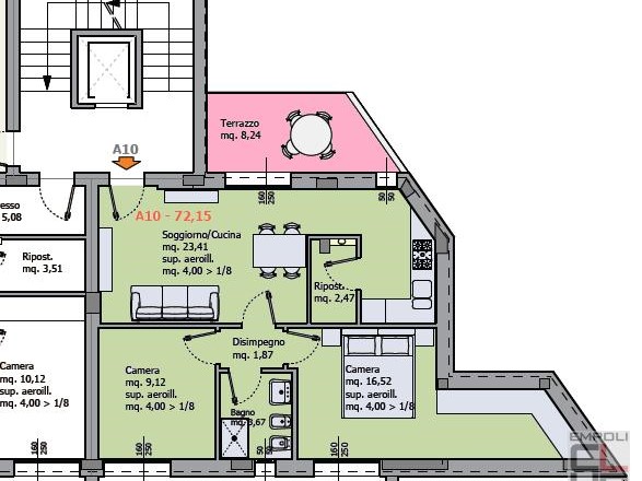 CAPOLUOGO - Empoli- RIF. F/0547- CON LA CONSULENZA SPECIFICA DELL'AGENZIA EMPOLI CLUB IMMOBILIARE. BARICENTRICO FRA STAZIONE FERROVIARIA E PIAZZA DELLA VITTORIA, IN PALAZZINA NUOVA PROGETTATA ARCHITETTONICAMENTE E TECNOLOGICAMENTE NEI MINIMI DETTAGLI AL FINE DI OFFRIRE ALL’UTENZA FINALE UN PRODOTTO DI ASSOLUTA QUALITA’ IN CUI RISPARMIO ENERGETICO, FUNZIONALITA’, COMFORT, PRIVACY, RISULTANO ESSERE I PRINCIPALI OBIETTIVI. I MATERIALI PER LA REALIZZAZIONE DELL’INVOLUCRO EDILIZIO IN COMBINAZIONE CON LE SOLUZIONI IMPIANTISTICHE ADOTTATE PERMETTONO DI GARANTIRE ALLE UNITA’ IMMOBILIARI UNA CERTIFICAZIONE ENERGETICA VIRTUOSA E SUPERIORE A QUANTO RICHIESTO DALLA NORMATIVA VIGENTE E COME PREVISTO DALLA DIRETTIVA EUROPEA CEE/31/2010. DISTINTO APPARTAMENTO DENOMINATO A-10; mq 72 con terrazza di mq 8 e box di mq 16. Classico appartamento di 4 vani organizzato al meglio, ingresso, soggiorno, cucina con dispensa, disimpegno notte, due camere da letto e doppi servizi. Terrazza riservata, sul retro, e affacci sui villini della città. AUTOMAZIONI, DOMOTICA, ALLARME, ZANZARIERE, OSCURAMENTO CON PANNELLI FRANGISOLE, FOTOVOLTAICO. Classe energetica: A4 IPE 10.00 EURO 330.000,00