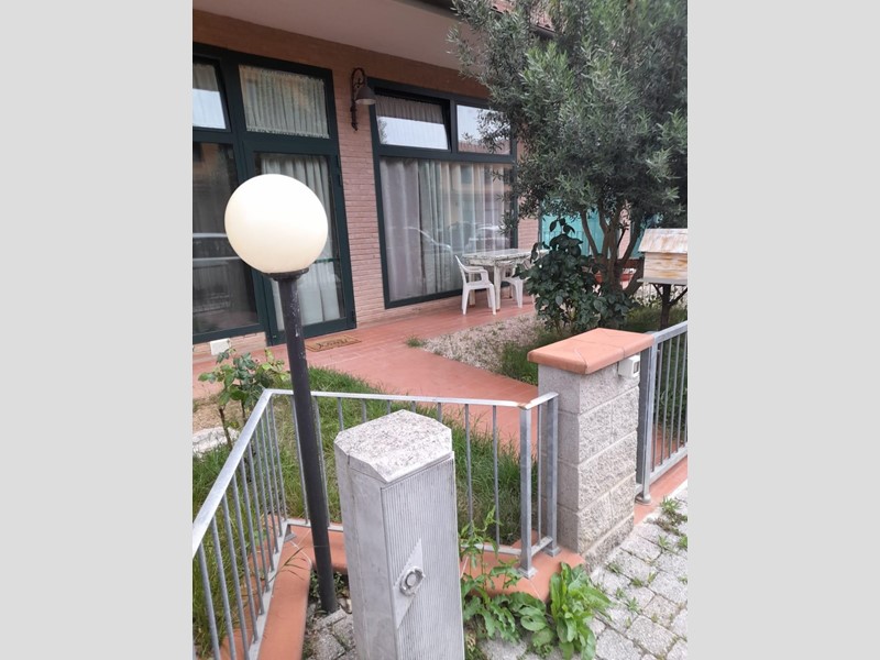 Comodo appartamento in vendita con ingresso indipendente posto al piano terra, composto da soggiorno-cucina, ripostiglio, due camere matrimoniali antibagno-lavanderia e bagno. Attualmente è provvisto di tre potenti condizionatori elettrici per raffreddare e riscaldare gli ambienti, vi sono tutte le predisposizione per il depuratore dell''acqua e per allaccio della caldaia. L' appartamento è corredato da un giardino privato, posto auto scoperto e grande garage.