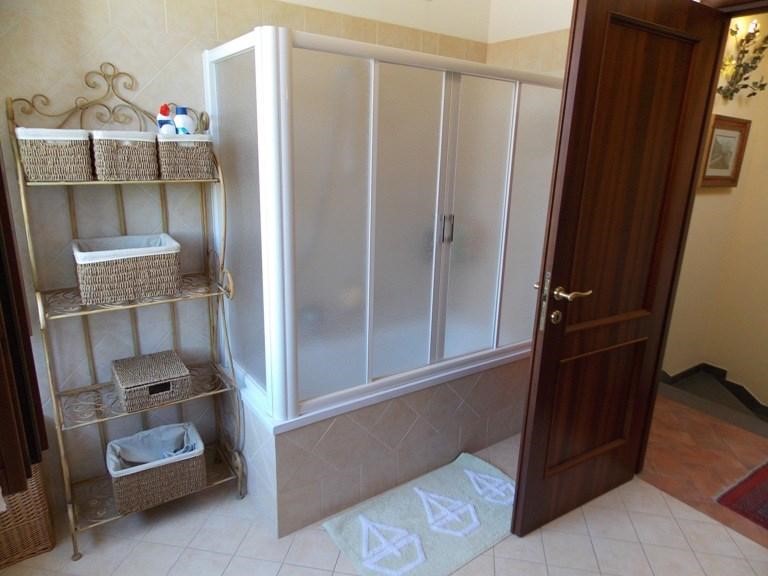 Rosignano Solvay zona teatro, in zona residenziale, vendesi porzione di villa terra/tetto di 320 mq!!, come nuova, ideale anche per due nuclei familiari con grande giardino di circa 550 mq. L’Immobile è stato costruito secondo le ultime normative in materia di risparmio energetico. La casa è composta: al piano terra , salone, soggiorno, cucina abitabile e bagno, al piano primo 2 camere matrimoniali, un grande bagno, in Mansarda  una  camera matrimoniale, 1camerina e bagno, ripostiglio. Al piano seminterrato con accesso sia interno che esterno piccolo appartamento con cucina abitabile, soggiorno con camino, camera matrimoniale e bagno.