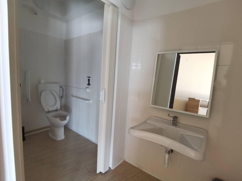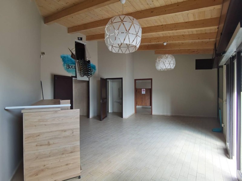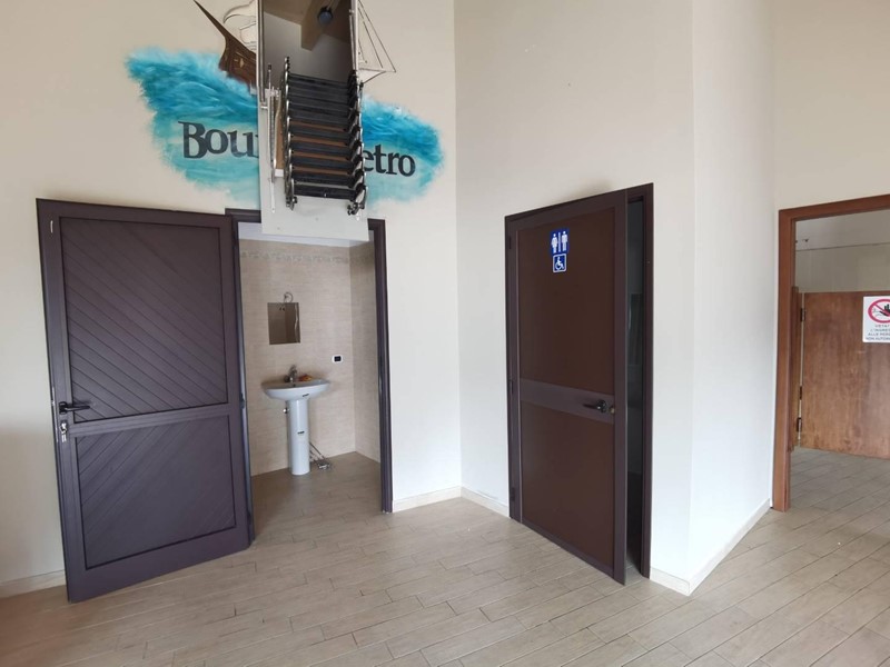L'immobile dispone di apertura con serranda elettrica, porte automatiche antifurto, doppi servizi con bagno disabili e soppalco-deposito.