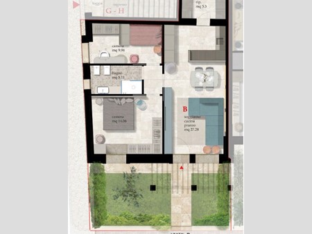 L'appartamento è posto al piano rialzato con ingresso da GIARDINO PRIVATO di 30 MQ e si compone di soggiorno-pranzo con cucina a vista, spazioso ripostiglio, disimpegno notte, bagno con finestra, una camera matrimoniale e una singola..
