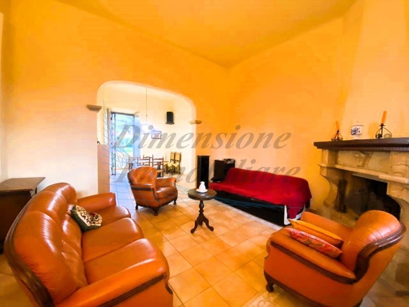 L'appartamento al piano superiore presenta una spaziosa sala doppia con camino e un terrazzo di 14 mq con vista.