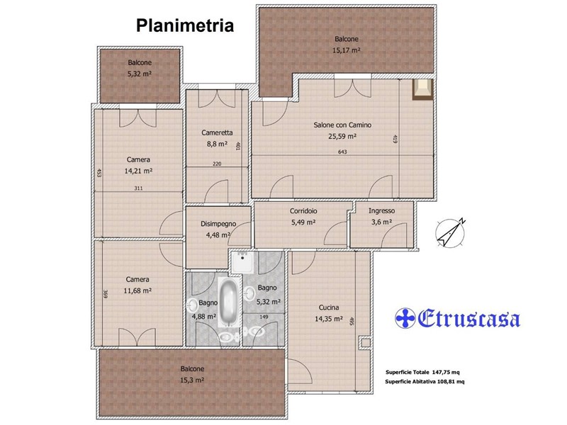 L'appartamento di 110 mq è situato al terzo piano e composto da: 3 Camere da letto, Salone con Camino, Cucina Abitabile, 2 bagni, Ingresso, corridoio e disimpegno, 3 Balconi con vista.