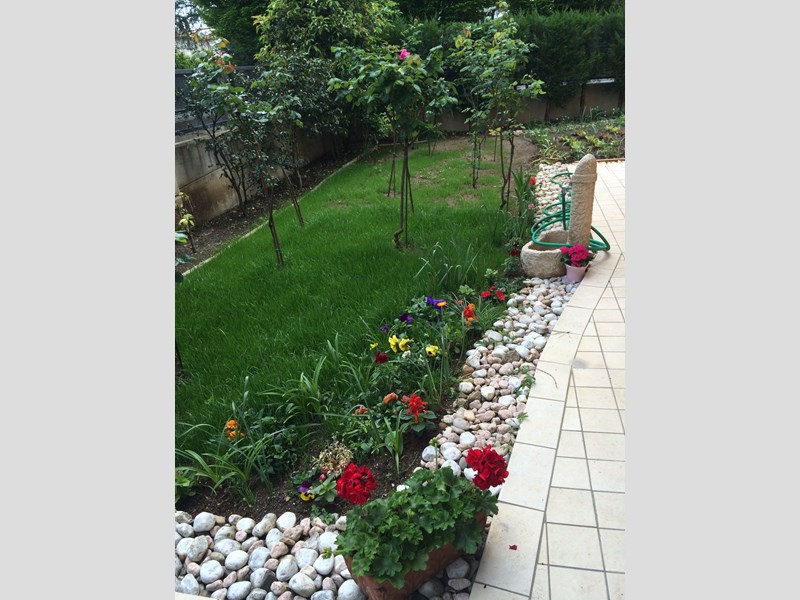 Appartamento piano terra entrata indipendente, cucina e soggiorno, camera grande, 2 camere piccole, 2 bagni, doppio garage, riscaldamento a pavimento, condizionatori, allarme, 150m giardino.