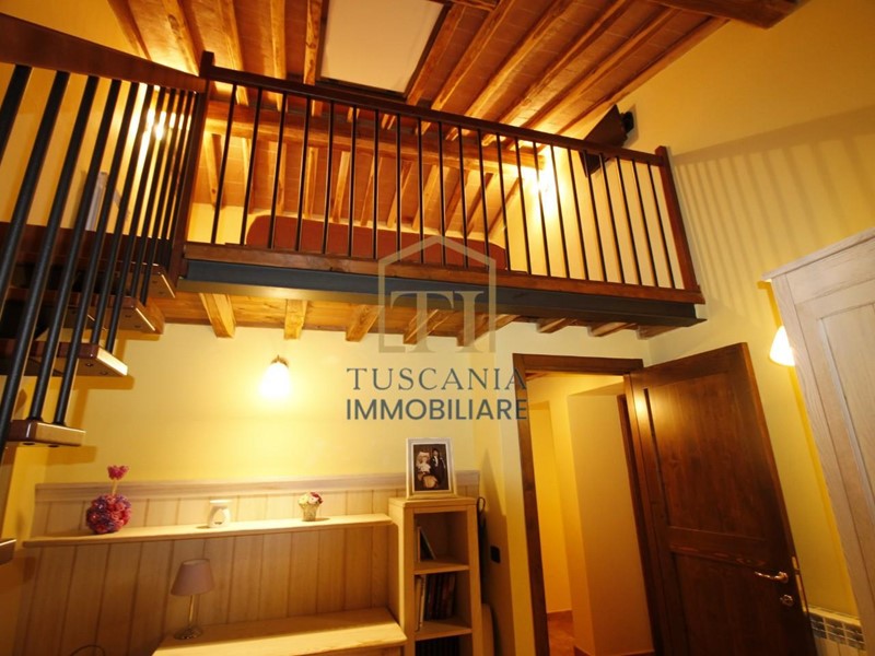 VENDIAMO, In zona campagna in bellissimo borgo tipico toscano, il tutto completamente ristrutturato, bellissimo appartamento terratetto, finemente ristrutturato e cosi composto: accesso da resede privato tutto piastrellato, con piccolo portico; nell'appartamento troviamo soggiorno con caminetto, e cucina a vista in muratura, un bagno; al piano primo una camera con soppalco dove è collocato il letto matrimoniale , altra ampia camera matrimoniale anche questa soppalcata, un bagno con finestra che si affaccia sul borgo. Di compendio a detto appartamento un garage di mq circa 20 , distaccato dell'appartamento, a soli pochi decine di metri. Immobile Adatto per chi ama la natura e la tranquillità