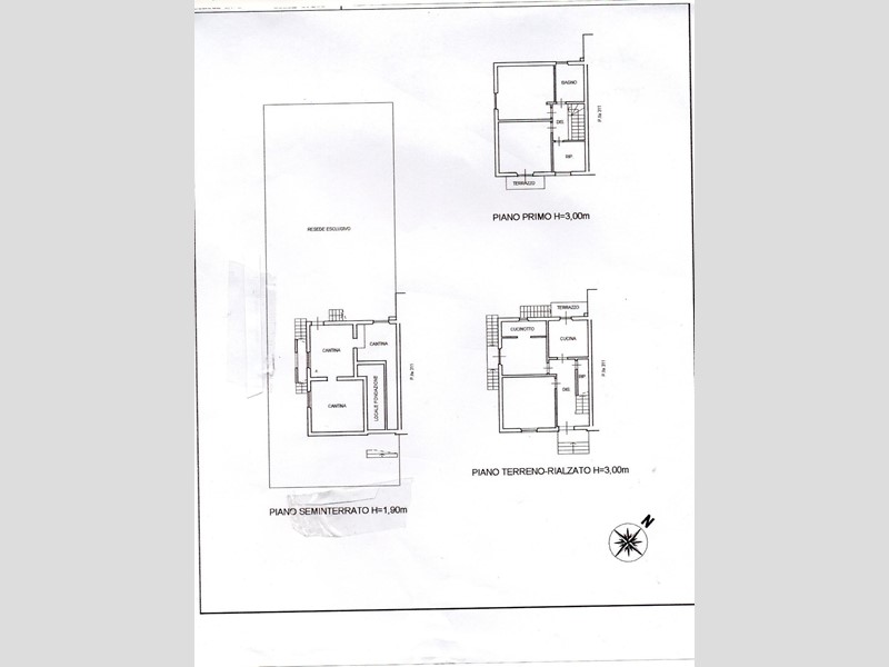 composto da piano rialzato cucina, pranzo, soggiorno e ripostiglio, al piano primo due matrimoniali, studio e bagno. Al piano seminterrato locali di sgombero (cantine).