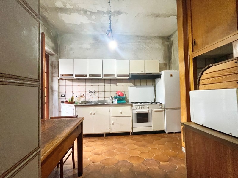 L'ingresso avviene da ampia e vivibile veranda con caratteristiche arcate, da cui si accede alla grande sala composta da due vani luminosi dotati di ampie finestre e porte a seguire disimpegno, cucina abitabile con terrazza ed accesso esterno, camera matrimoniale e grande servizio;