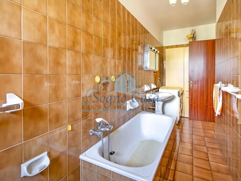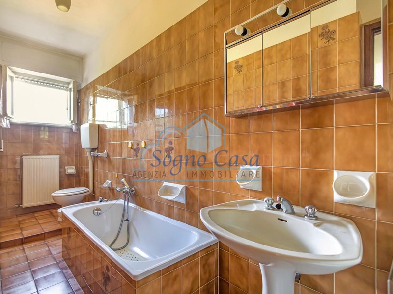 Il bagno, sebbene necessiti di ristrutturazioni, è funzionale e dispone degli impianti essenziali. Con qualche aggiornamento, potrebbe diventare un luogo di comfort e benessere.