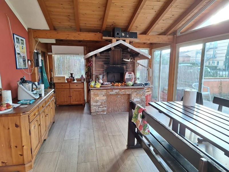 PORCARI - In zona vicino a tutti i servizi, proponiamo in vendita villa bifamiliare di 190 mq, in ottime condizioni, suddivisa in due appartamenti ognuno con ingresso indipendente, composta al piano terra da: soggiorno, cucina abitabile , disimpegno, due camere matrimoniali, una camera singola e bagno con vasca. Al piano primo, con accesso da scala esterna, troviamo un appartamento composto da soggiorno, cucina abitabile con termocamino, ripostiglio, bagno con doccia e camera matrimoniale (mansardata). L'immobile è corredato da depandance con cucina, antibagno e bagno, garage di 20 mq, locale lavanderia, resede e giardino recintato su tre lati di circa 500 mq. Dotato di aria condizionata, aspirazione centralizzata, impianto fotovoltaico e ottime rifiniture (pavimenti in cotto e parquet, infissi in legno con doppi vetri).