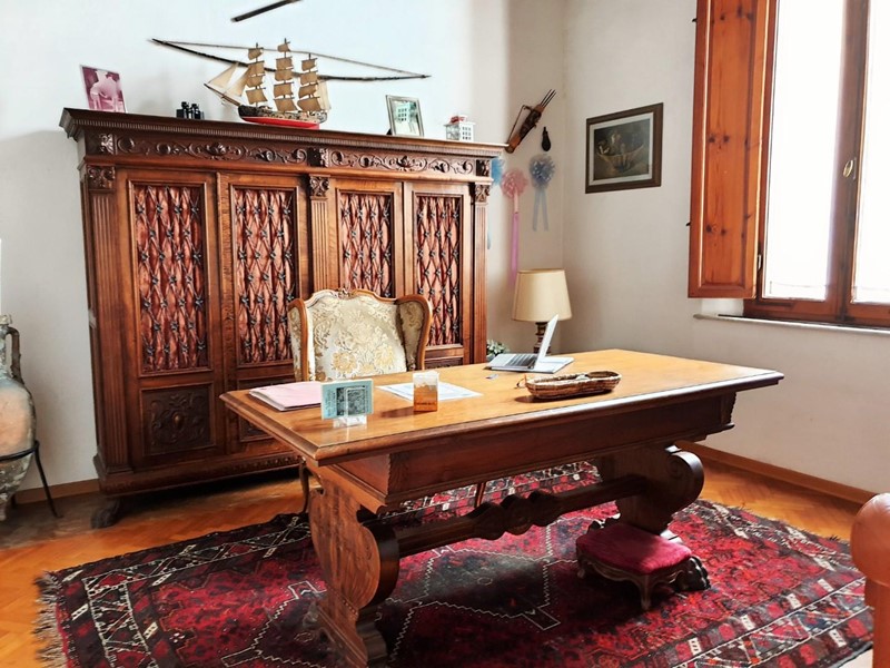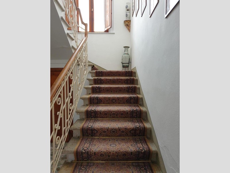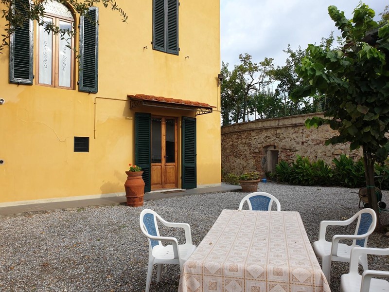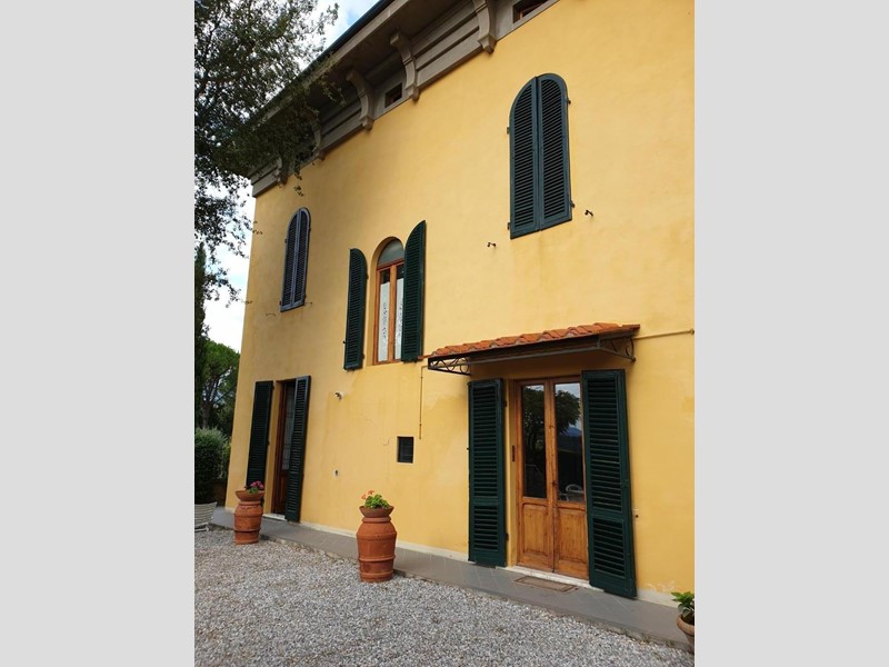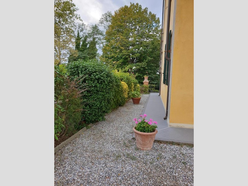 La bella ed elegante villa in stile liberty si trova nella parte alta del paese, con bellissima veduta sulle colline circostanti apprezzabile dalle finestre dal giardino di proprietà. Si accede alla villa tramite una doppia scalinata che ci conduce all'elegante portone d'ingresso. All'interno, troviamo, oltre al doppio salone, la sala da pranzo, la cucina abitabile in muratura con dispensa. Al piano primo sono presenti 4 camere matrimoniali, doppi servizi ed uno studio; all'ultimo piano raggiungibile tramite scala in parquet saliamo al terzo ed ultimo piano dove troviamo altre tre camere matrimoniali, un bagno con vasca e doccia ed un ripostiglio (con seconda caldaia). I pavimenti della zona giorno sono in pregiato marmo, mentre nella zona notte ci accoglie un caldo parquet. Bellissimi i soffitti con travi in legno e mezzane, oltre ai bellissimi lucernari che riempiono l'abitazione di luce naturale. Completa la proprietà un bel giardino disposto su due livelli di circa mq 450, un garage e una zona lavanderia in costruzione presente all'interno del giardino.