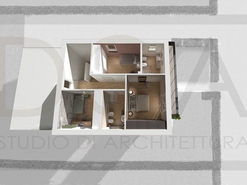 - piano primo = (mq 77) doppi servizi e 3 camere da letto (la matrimoniale con bagno padronale e balcone).