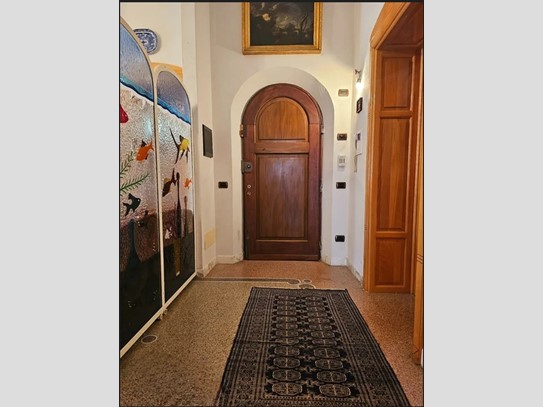 Una volta giunti all'interno dell'appartamento non possiamo non notare meravigliose pavimentazioni in graniglia a getto con decorazioni risalenti all'epoca e ampi spazi finemente arredati con soffitti alti di quasi 4 mt .