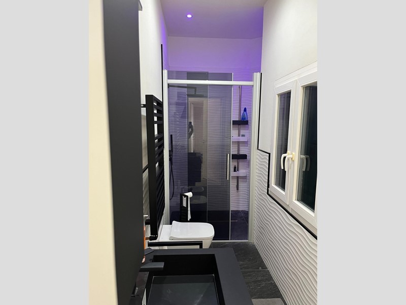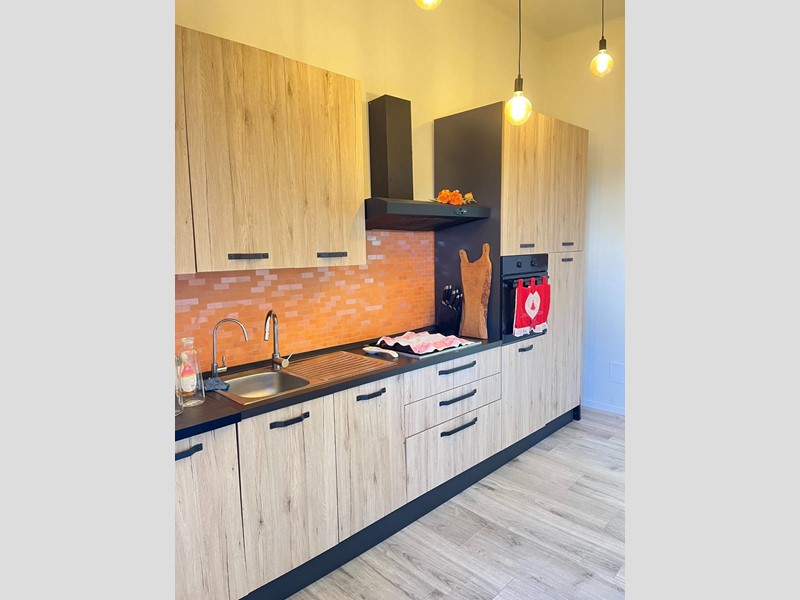 Appartamento a Marina di Carrara, al primo piano, completamente ristrutturato, composto da: Soggiorno con balcone, Cucina abitabile con terrazza pranzabile, Due camere matrimoniali e bagno con doccia.