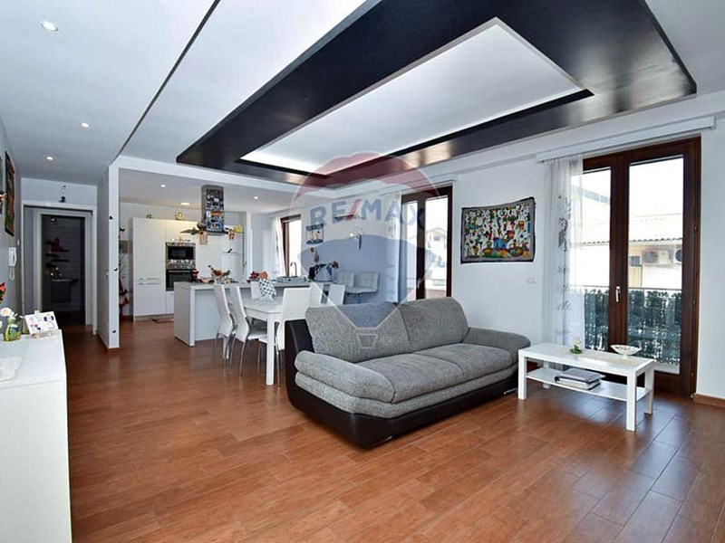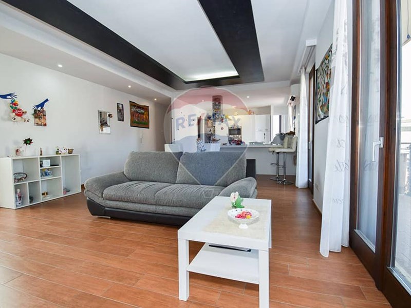 -ingresso zona living cucina soggiorno con terrazzino a livello verandato e altro balcone con esposizione su strada principale,