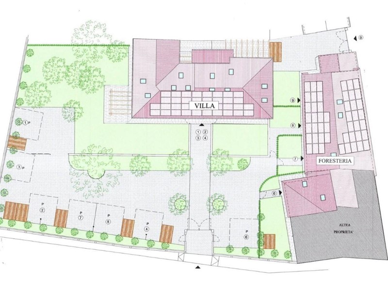 Completano la proprietà un giardino/resede di mq 80, 2 posti auto con predisposizione colonnina ricarica auto elettriche e box in legno.