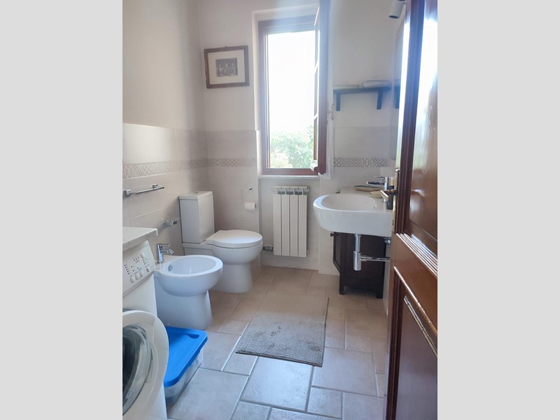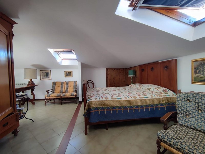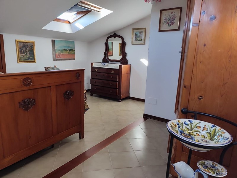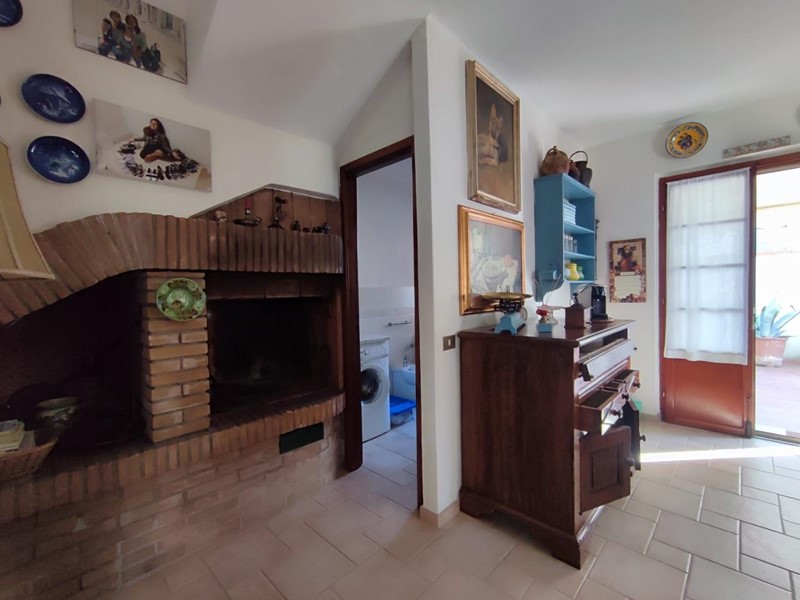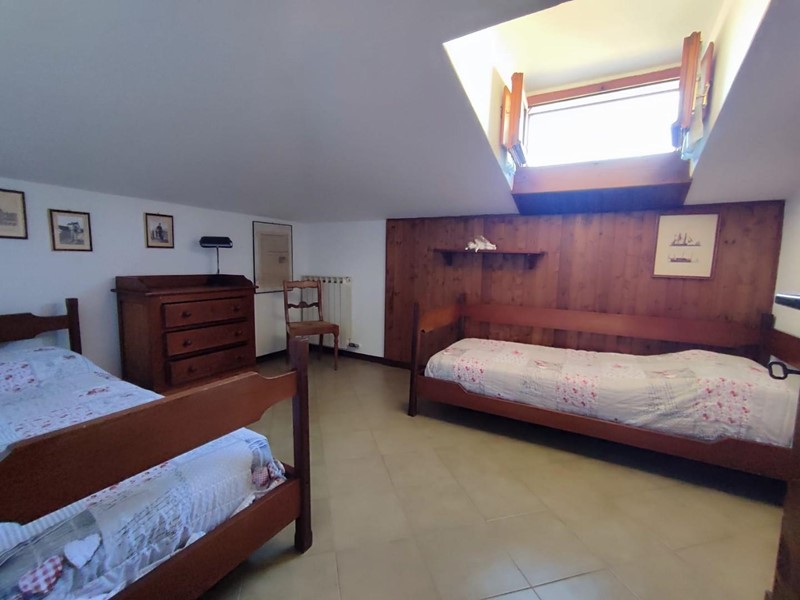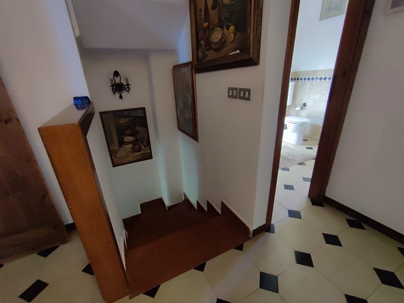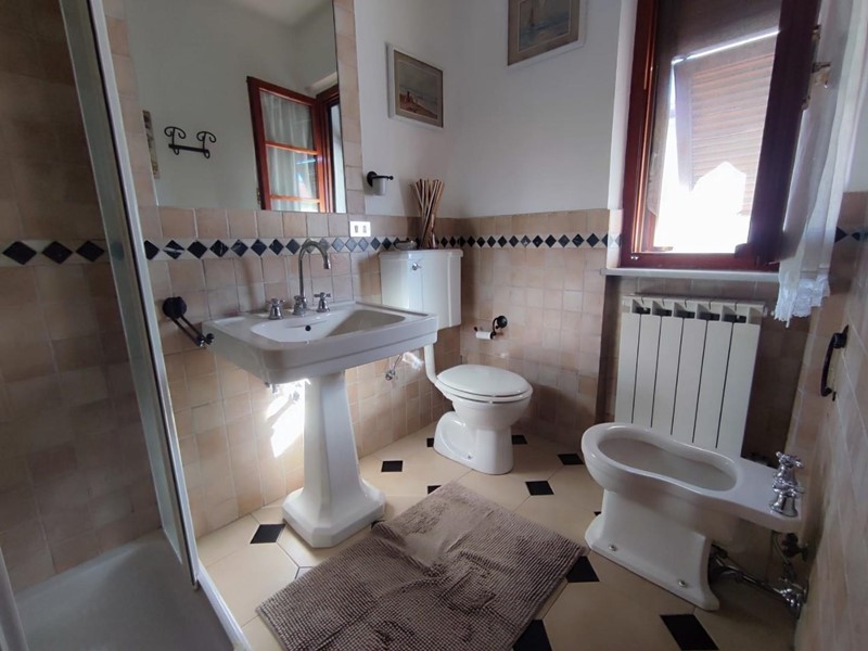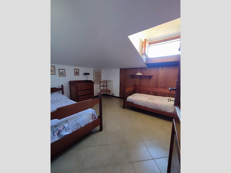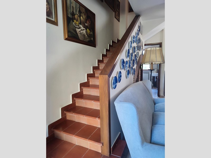 Porzione di Villetta a schiera disposta su 3 livelli ciascuno di circa 60 m2 commerciali Giardino di circa m. q 190 Garage a due posti di circa mq. 30 Piano terra Ingresso salotto Cucina abitabile con caminetto Bagno Il bagno può essere trasformato in ripostiglio Piano 1°Camera con terrazzo bagno Cucinotto Soggiorno con terrazzo Piano mansardato Camera Camera bagno Allo stato attuale l’ unita’ immobiliare e’ suddivisa di fatto, non catastalmente, in due unita’ con accessi indipendenti ma perfettamente comunicanti tra di loro nel caso si vogliano usare insieme.