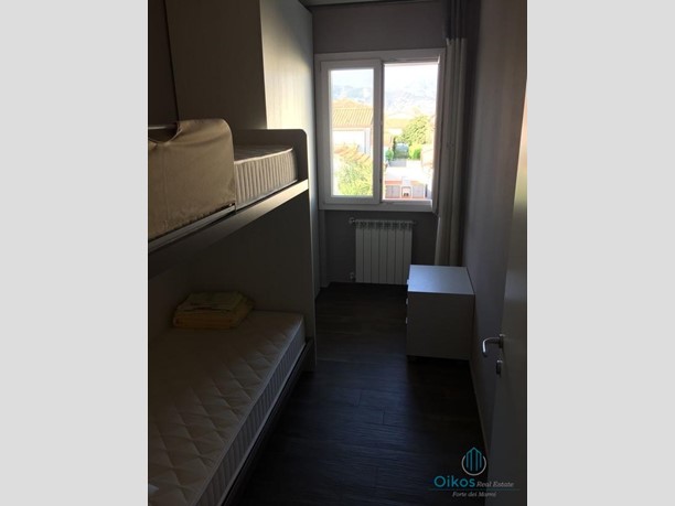 Forte dei marmi - a soli 300 mt dal centro e 500 mt dal mare, in zona molto tranquilla, appartamento su due livelli, con piccolo giardino e posto auto. L'immobile al suo interno è composta da: piano terra: ingresso salotto, sala da pranzo, angolo cottura, bagno di servizio con doccia. Al piano primo due camere, una doppia ed una matrimoniale, oltre ad un altro bagno con doccia/vasca. Recentemente ristrutturato, veranda esterna, lavatrice, lavastoviglie, impianto di allarme, aria condizionata, internet wi-fi.Per maggiori informazioni, potete contattarci o venirci a trovare presso la nostra sede oikos real estate a Forte dei Marmi, in via Trento n. 45/a.