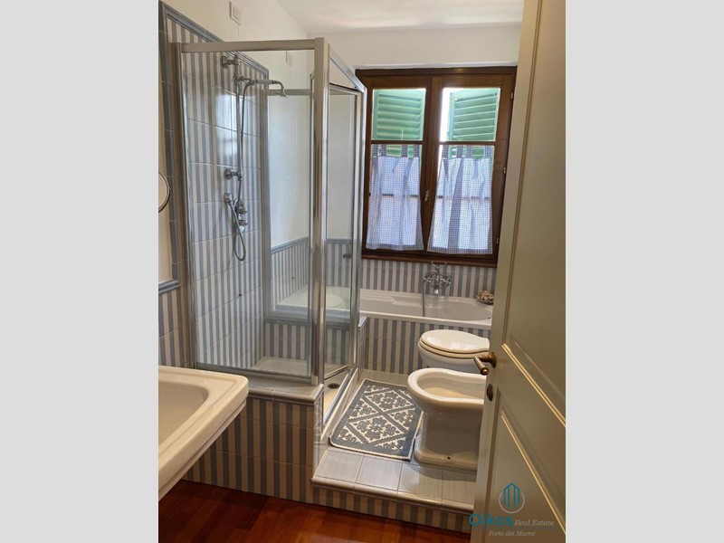 Forte dei marmi - Porzione di Villa Trifamiliare, nel cuore di Forte dei Marmi a pochi passi dal centro e dalle spiagge; all'interno è composta da ingresso, salottino, sona pranzo cucina e bagno di servizio con doccia. Al piano primo due camere una matrimoniale ed una doppia con un bagno a servizio delle due camere composto sia da doccia che da vasca, nel piano mansarda un'altra camera matrimoniale con bagno. La villa è dotata inoltre di aria condizionata, internet wi -fi, posto auto ed allarme.Per maggiori informazioni, potete contattarci o venirci a trovare presso la nostra sede a Forte dei Marmi alla Via Trento n. 45/a.