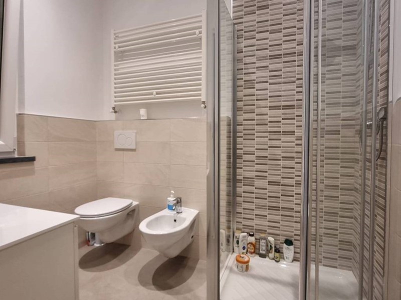 ESCLUSIVA DI VENDITA: Cinquale, a circa 1.200 mt dal mare e in prossimità di tutti i servizi, all'interno di un piccolo fabbricato trifamiliare, grazioso appartamento di recente costruzione posto su due livelli e composto da: ingresso, ampio soggiorno/pranzo con accesso a bella veranda esterna pranzabile, angolo cottura, 1 bagno con doccia, 1 camera matrimoniale e 1 camera doppia con 1 bagno interno a piano terra; ampio vano (3/4 camera, ripostiglio e 1 bagno al piano seminterrato. Climatizzato ovunque e dotato di zanzariere. Giardinetto privato con posti auto interni. No condominio!!!!