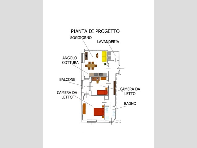 All'interno l'appartamento presenta una cucina abitabile, soggiorno e camera da letto spaziosa. Tutte le stanze affacciano sul balcone. Bagno funzionale con vasca. Presente un ripostiglio, perfetto per riporre oggetti di uso quotidiano.