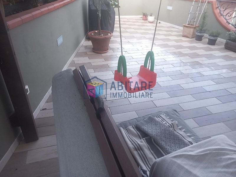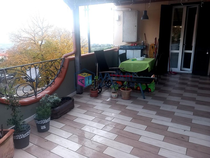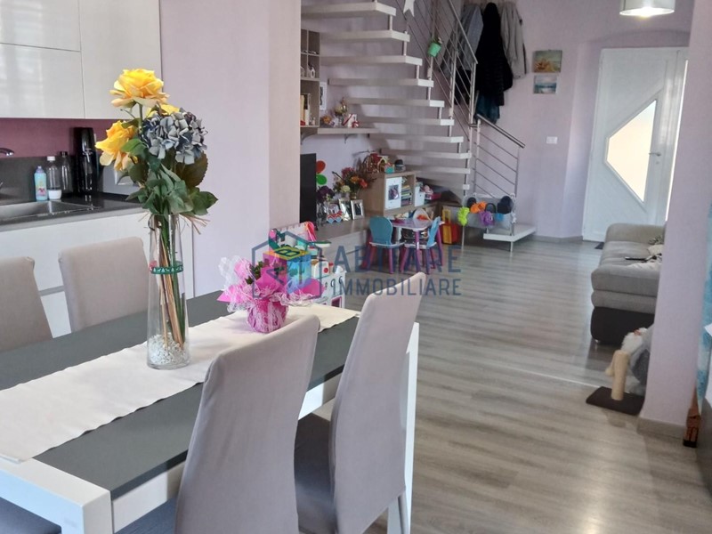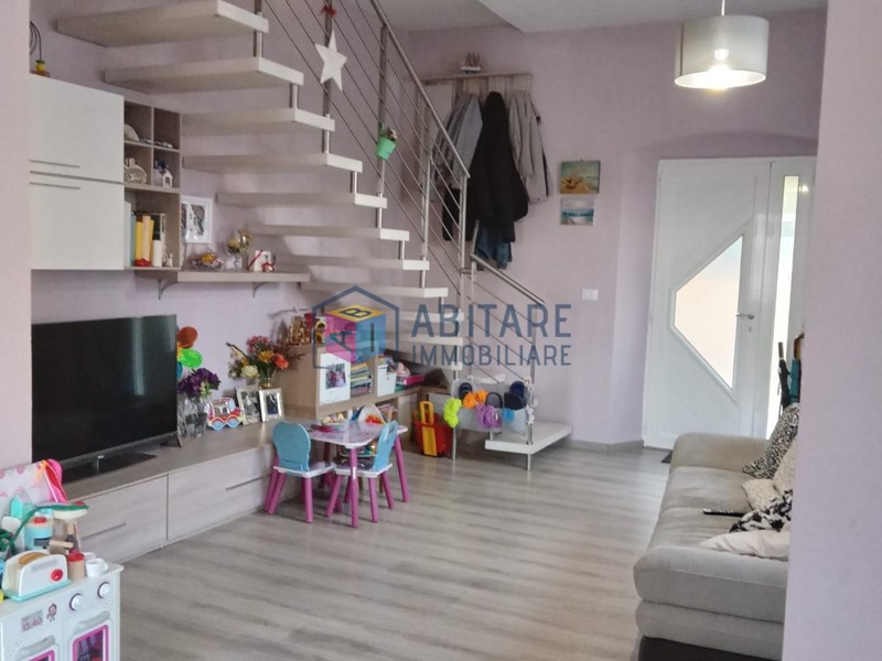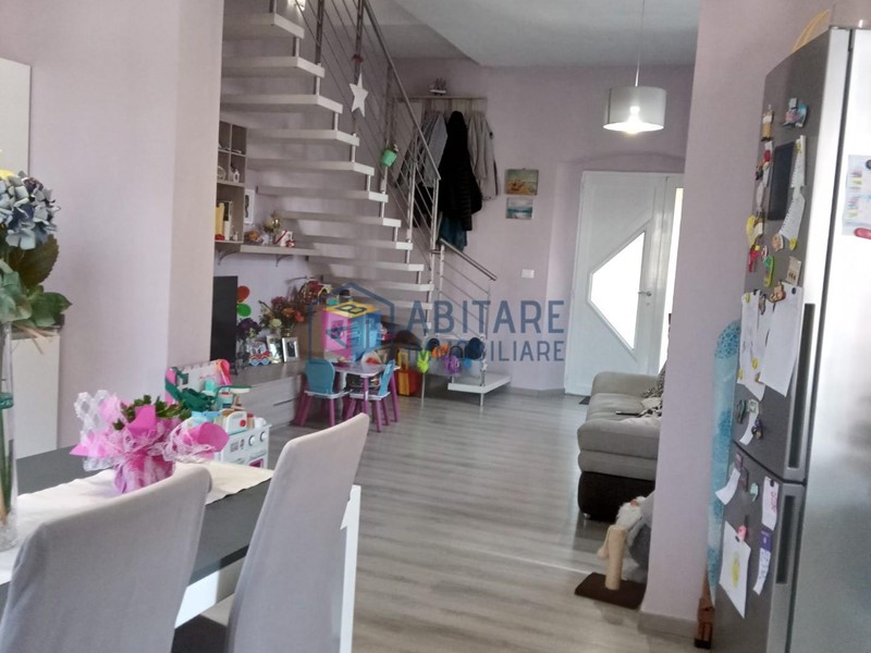 Ci troviamo nel centro del paese, in posizione dominante, zona fornita nelle immediate vicinanze di tutti i servizi necessari, tutti facilmente raggiungibili a piedi. L’immobile in questione è ubicato al piano terra rialzato, con ingresso indipendente, libero su tre lati e si sviluppa su due livelli di circa 114 mq. ed è così composto: ampia zona living con sala/soggiorno, cucina a vista dove è possibile accedere alla bellissima TERRAZZA di 35mq. completamente attrezzata, ottimo sfogo esterno per godersi la bella stagione, con meravigliosa VISTA PANORAMICA. Tramite una comoda scala raggiungiamo il piano superiore, che offre una camera matrimoniale, una camera media con spazio per cabina armadio, ripostiglio sottotetto, bagno con doccia e finestra. L’immobile è stato completamente ristrutturato e rifinito con ottimi materiali, riscaldamento AUTONOMO, presente anche una bellissima stufa a pellet effetto camino, ambienti climatizzati. Pavimenti in laminato effetto legno sbiancato, porte bianche laccate, infissi in pvc/vetro termico vasistas. Pannelli fotovoltaici. Nessuna spesa condominiale. Completano la proprietà un garage di 65mq. ed un locale di 36mq. entrambi da ristrutturare. UN OTTIMO AFFARE!!! SUBITO DA VEDERE!!!