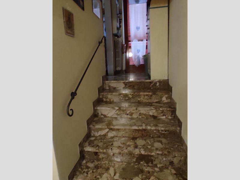 Piano mezzano: cucina abitabile, ampio salone con camino;