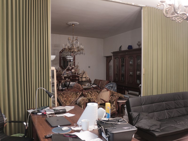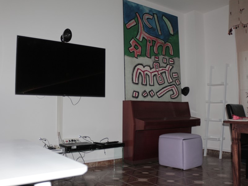 Al piano terra troviamo un ingresso che disimpegna sulla destra una camera comunicante con uno studio, comunicante a sua volta con una stanza-biblioteca,