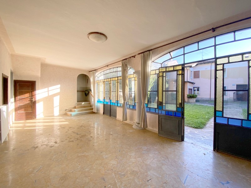 Posizionato a pochi passi dalla piazza del paese, l'edificio, indipendente e riservato, presenta al piano terra una veranda con grandi stanze affacciate sul giardino sul retro.