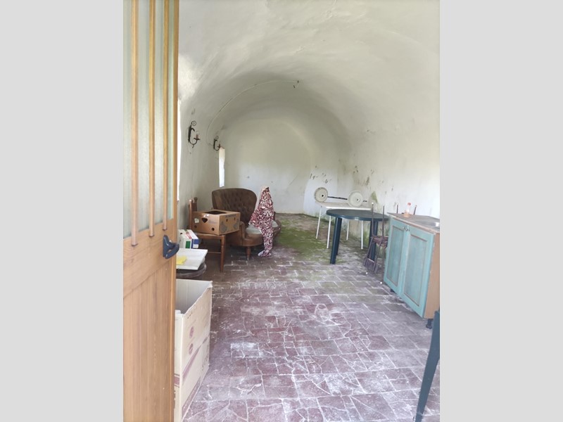 L'immobile è così composto: n. 3 cantine al piano terra e bagnetto di servizio. Al piano primo: sala da pranzo, cucina con camino, camera matrimoniale, soggiorno, cameretta, studio, bagno con doccia e finestra. Accesso al piano primo da scala esterna, con doppio ingresso: uno in cucina e uno nella sala da pranzo.