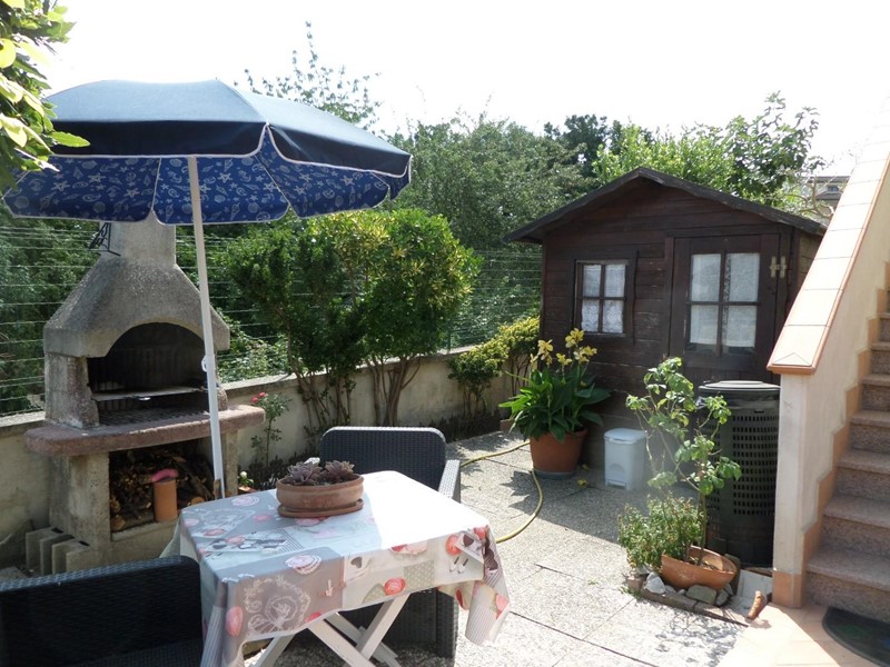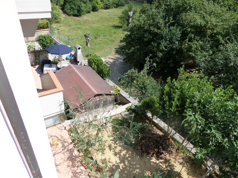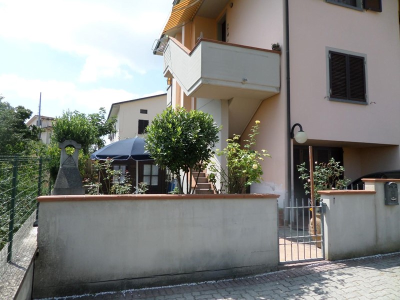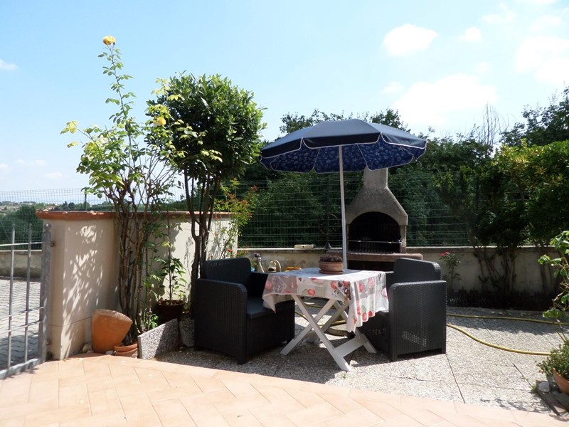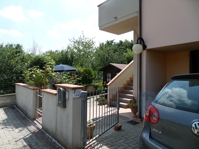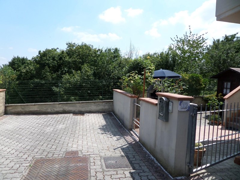 Montopoli in Val d'Arno, in zona collinare panoramica, Appartamento d'angolo completamente indipendente con giardino e posti auto privati. L'accesso avviene da un vialetto carrabile a comune con altre unità in fondo al quale si trovano i due posti auto privati, attraverso un cancello carrabile si accede all'area antistante il garage che funge da terzo posto auto, il garage, molto grande, è dotato di un bagno di servizio e di tutti i servizi necessari per utilizzarlo come taverna, in appoggio alla zona barbecue che si trova nella parte lastricata del giardino, sulla quale insiste anche una casetta di legno prefabbricata adibita a ricovero attrezzi per la cura del retrostante porzione di giardino adibito ad orto. L'accesso avviene anche attraverso un cancello pedonale posto di fronte alla scala privata che porta al secondo piano, attraverso un portoncino blindato si accede alla zona giorno composta da soggiorno, cucina con terrazzo e ripostiglio, attraverso una bella porta a vetri si arriva nel disimpegno notte sul quale si affacciano le due camere, di cui una con terrazzo, il bagno ed una scala a chiocciola che conduce al piano mansarda nel quale si trovano una cameretta ed un bagno. - Rif. 1734