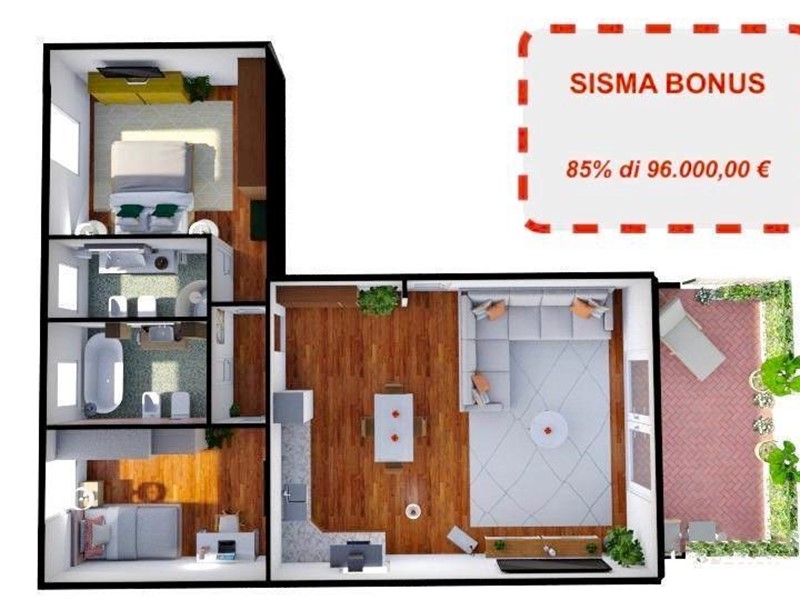 LA PARTE ACQUIRENTE PUO' PORTARE IN DETRAZIONE 48.000 € PER GLI SGAFI FISCALI DEL SISMA-BONUS. Proponiamo in vendita, nel quartiere di Porta a Lucca, a due passi dal centro storico di Pisa e da tutti i servizi di prima necessità, un ottimo appartamento di nuova costruzione facente parte di un fabbricato di sole 5 unità abitative, con ampi spazi verdi a comune, che lo rendono una soluzione ottimale per chi cerca la tranquillità e la comodità della vivere in città. L’appartamento, sito al 1° piano con ascensore, di circa 90 mq si sviluppa in 4 vani ed è composto da ingresso in ampio soggiorno con cucina aperta a vista in open-space di complessivi 36 mq con accesso ad un'ampia terrazza abitabile di 25 mq in parte coperta (perfetta anche per pranzi e cene all'aperto), disimpegno notte, due camere da letto matrimoniali, 2 bagni entrambi con finestra; completa la proprietà un grande garage doppio di circa 35 mq. L’unità abitativa così come l'intero l’edificio sono dotati di impianti tecnologici di ultima generazione, come ad esempio impianto di riscaldamento a pavimento, impianto fotovoltaico, portoncino blindato, infissi in triplo vetro e PVC, che lo classificano in Classe Energetica A3. La consegna è prevista per giugno del 2025.