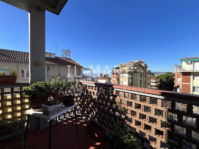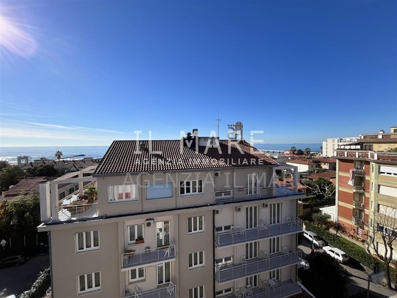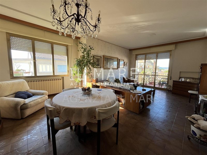 Marina di Massa : in posizione centrale ed a soli 100 mt. dal mare si propone appartamento di ampia dimensione posto in ultimo piano con ascensore. Al suo interno si compone di ingresso, soggiorno, cucina, tre camere da letto, doppi servizi e due balconi. Ampia terrazza solarium soprastante con stupenda vista sul mare e sulle Apuane. Garage e cantina.