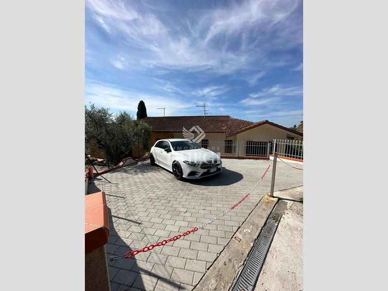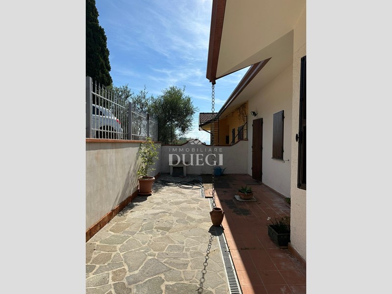 La Villetta libera su tre lati è corredata (oltre alla terrazza) da ampia resede pavimentata lato est e lato nord, giardino sottostante alla terrazza, locale ripostiglio - deposito e area a parcheggio privato per quatto posti auto.