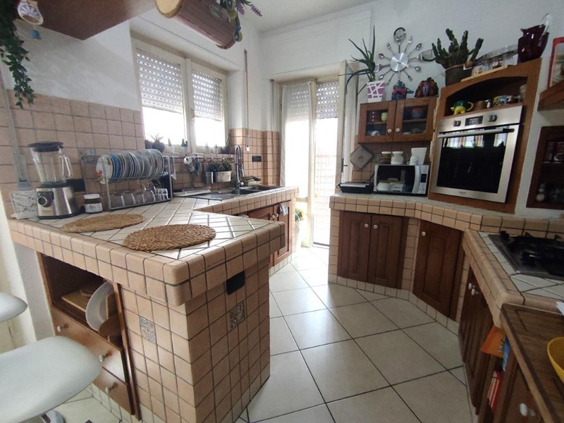 Sviluppato su unico piano al proprio interno si divide in: ingresso su ampio soggiorno con zona pranzo e accesso a terrazza, corridoio con ripostiglio e cucina abitabile in muratura con balcone e zona tinello. Nella zona notte, accessibile tramite disimpegno, si trovano tre camere matrimoniali e un grande bagno con vasca angolare.