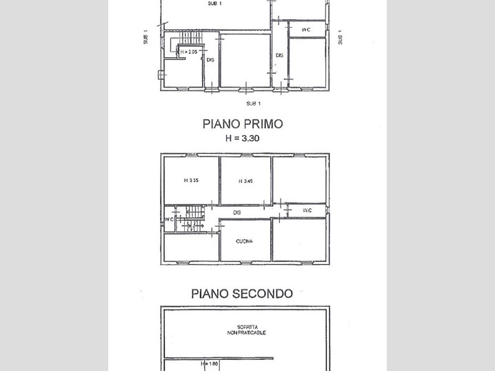 Piano primo: cucina abitabile, soggiorno, sala e due camere matrimoniali oltre bagno con vasca e bagno di servizio.
