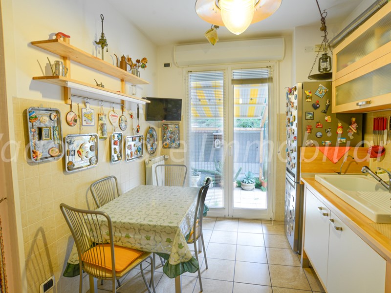 L'appartamento si presenta in ottime condizioni di mantenimento, si compone di ingresso su ampio salotto, cucina abitabile, camera da letto matrimoniale, camera da letto singola, bagno finestrato dotato di doccia e pratico ripostiglio. Di proprietà un grande e prezioso giardino di 120 mq sul quale è possibile uscire da tutte le stanze della casa (meno il bagno).