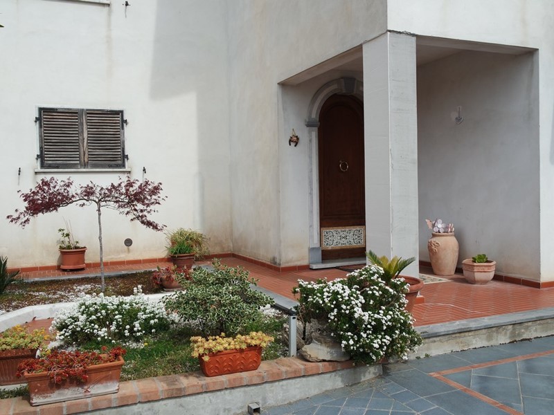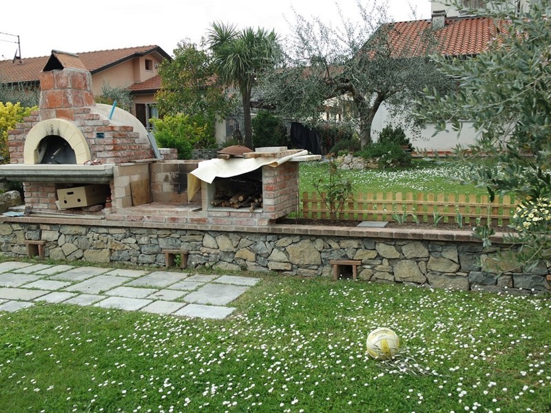 Luni, in piano, in bellissima posizione aperta, porzione di bifamiliare ben esposta con ampio giardino attrezzato con doppio ingresso carrabile. La villetta, di recente costruzione, è stata realizzata curando i minimi particolari. Si dispone su due livelli ( piano terra zona giorno e piano primo zona notte ). Ingresso in ampio soggiorno con camino, bagno e cucina abitabile. Garage uso lavanderia. Al piano primo, accessibile mediante bellissima scala in ferro battuto e marmo, disimegno su due grandi camere di cui una con grande terrazza e cameretta con balcone. Dalla zona giorno si accede al portico e al giardino attrezzato con pozzo e forno a legna /bbq. Doppia corte carrabile di cui una con cantina e localei accessori / attrezzi. Sottotetto uso sgombero. Da vedere!